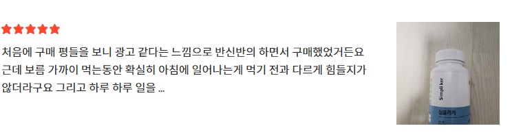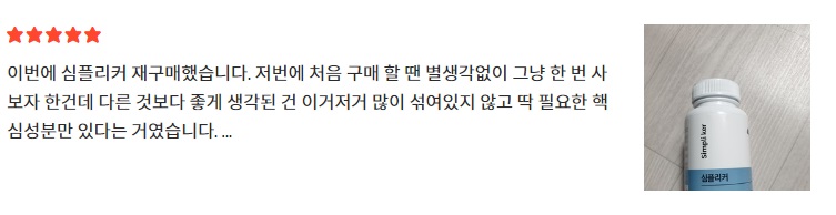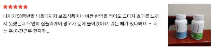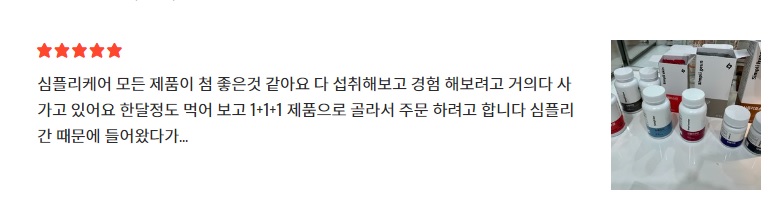 이러한 심플리커 효능으로 인해 심플리커 홈페이지에 게재된 후기들을 살펴보면 특별한 부작용이 있다는 후기의 비율은 거의 없다시피 해 부작용 걱정 없이 안전하게 드실 수 있는 제품입니다.