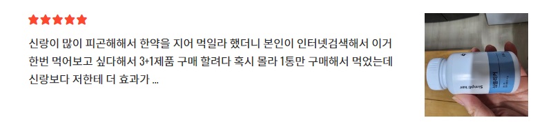 - 가격 대비 효능이 좋다. 처음 1개월 까지는 효능이 미비했으나 꾸준하게 섭취하니까 확실히 건강적인 부분에서 개선이 많이 되는 것을 느꼈다.