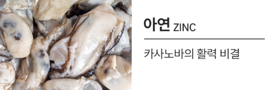 - 풍부한 아연의 함유는 호르몬 대사에 관여하여 성호르몬의 원활한 분비를 촉진하는 효능이 있습니다.