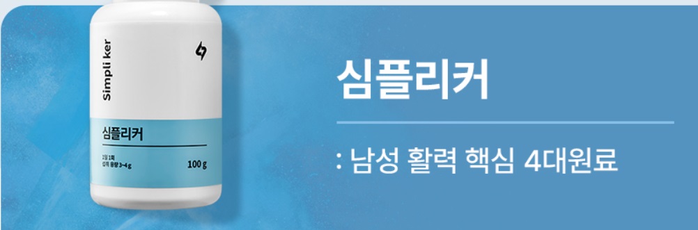 심플리커는 비교적 최근에 출시된 건강기능식품으로 수 많은 후기를 갖고 있는 남성 활력 제품입니다. 떨어진 성기능을 개선하고 호르몬 대사를 원활하게 하는 효능이 있어 갱년기로 고생하는 남성분들이 섭취하기에 좋지만 여성분도 섭취가 가능합니다.